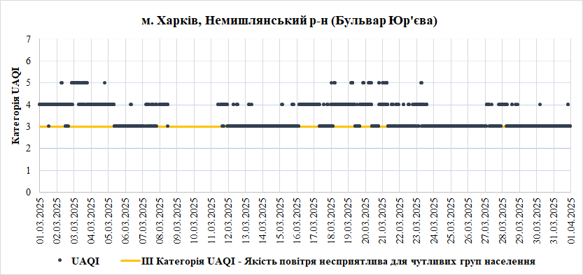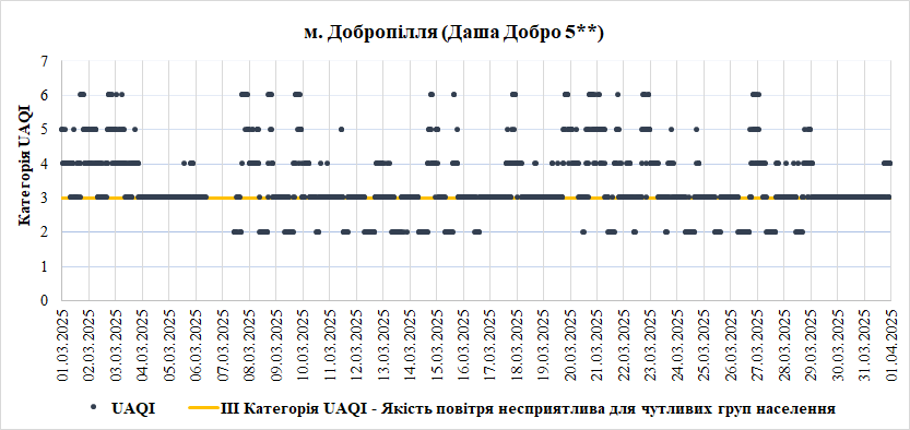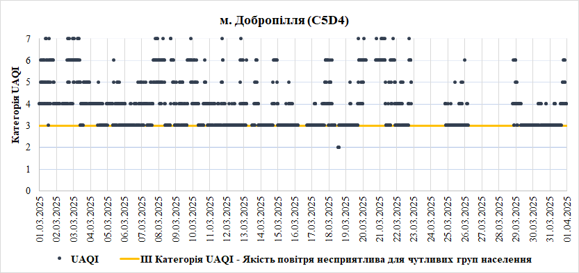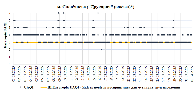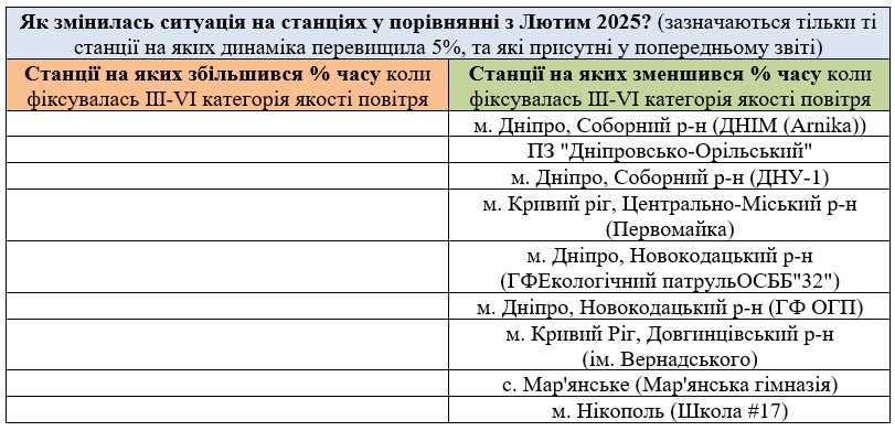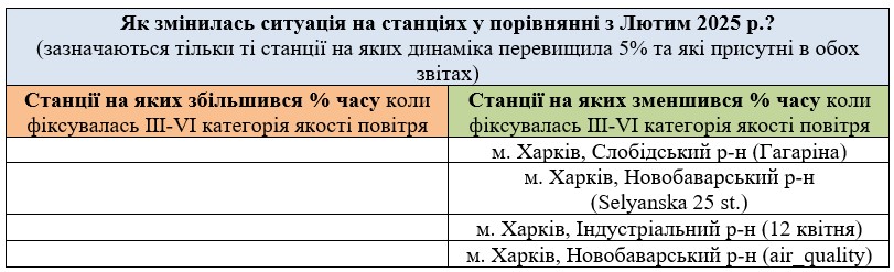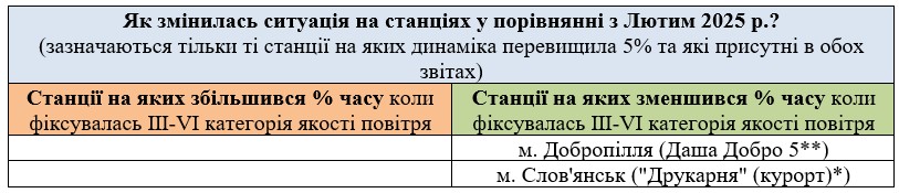 За березень аналізувались дані з 7 станцій моніторингу: