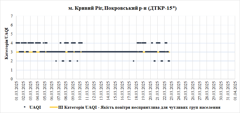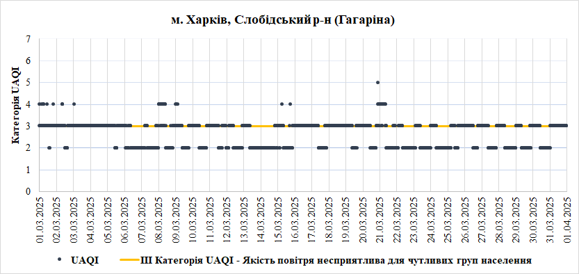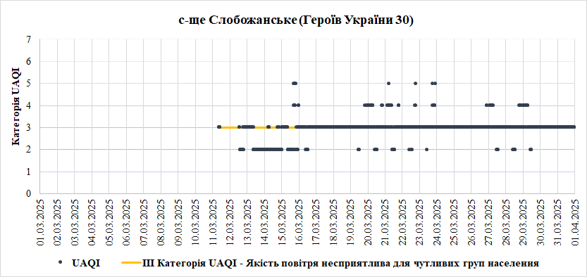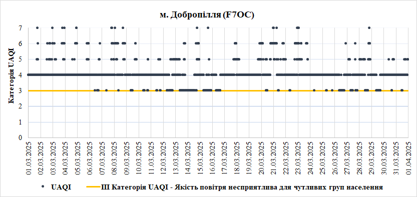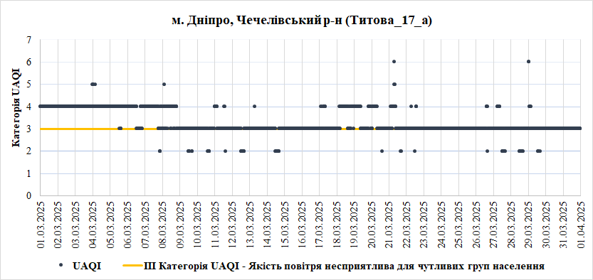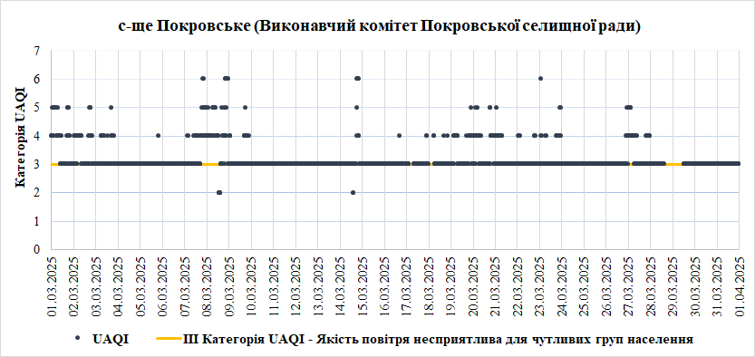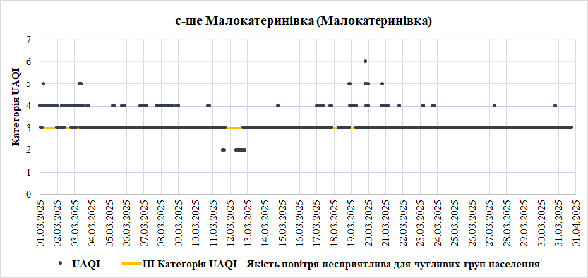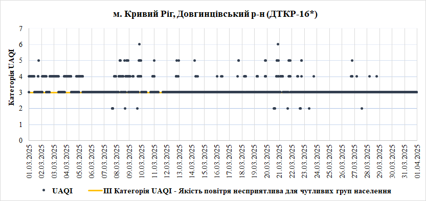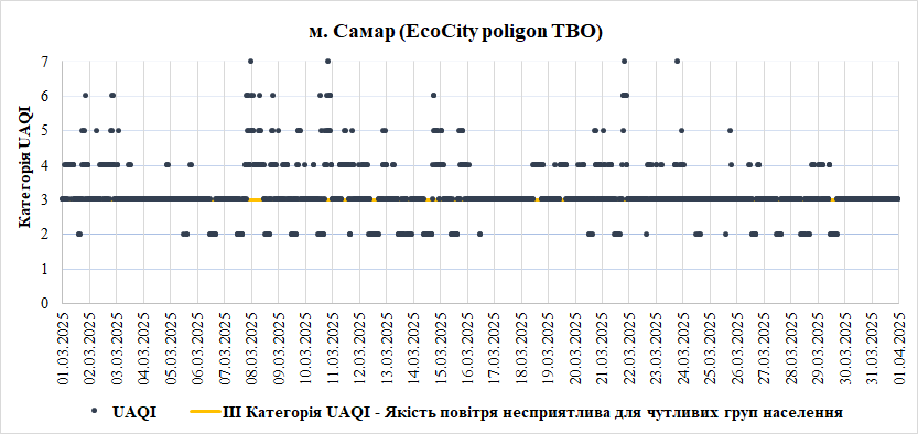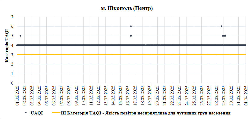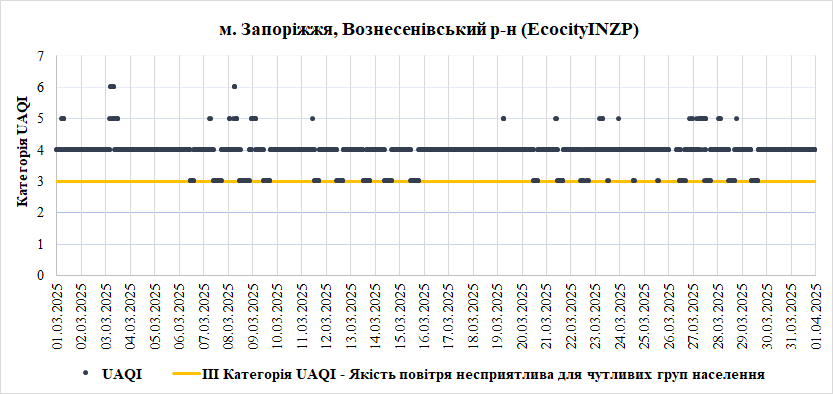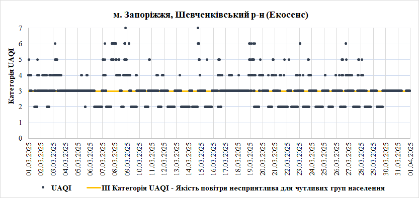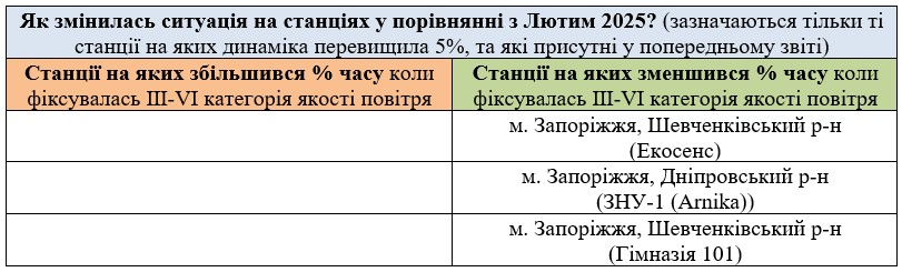 За період з 01.03.2025 по 31.03.2025 взяті до аналізу дані з 8 станцій моніторингу по Запорізькій області: