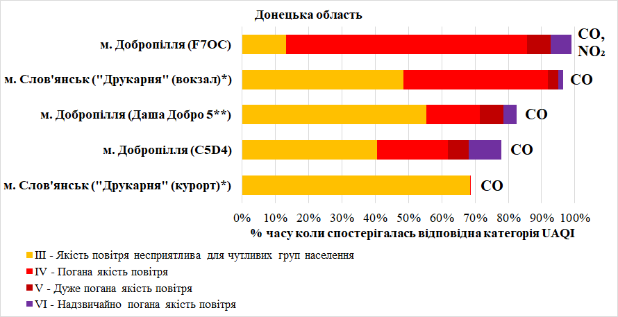 – оксид вуглецю (СО) – у Добропіллі та Слов’янську.