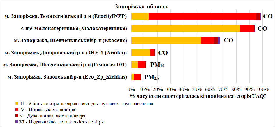 – дрібнодисперсний пил (РМ10 та РМ2.5) – у Запоріжжі.