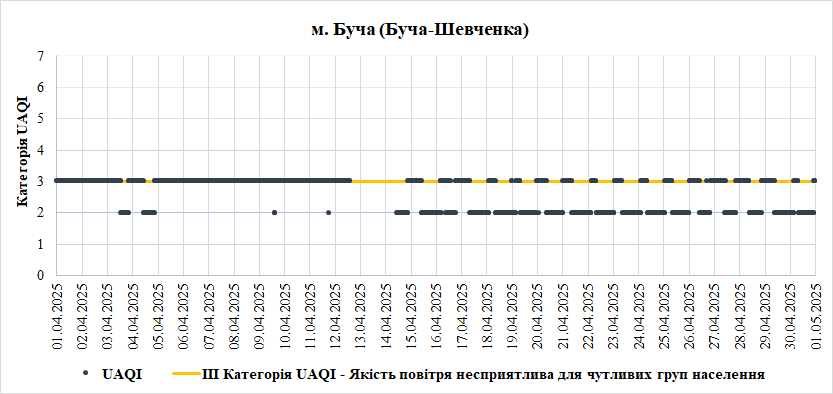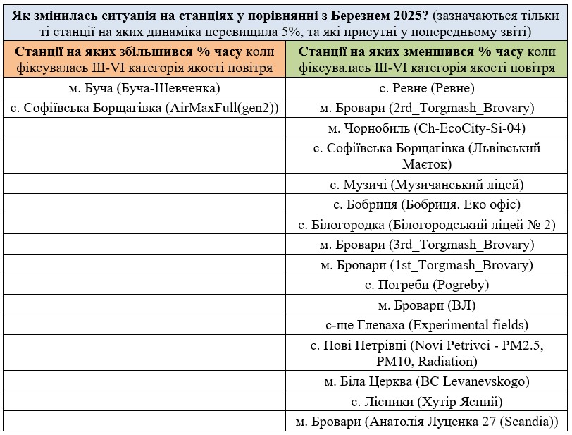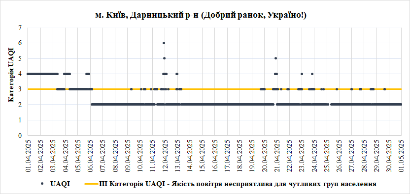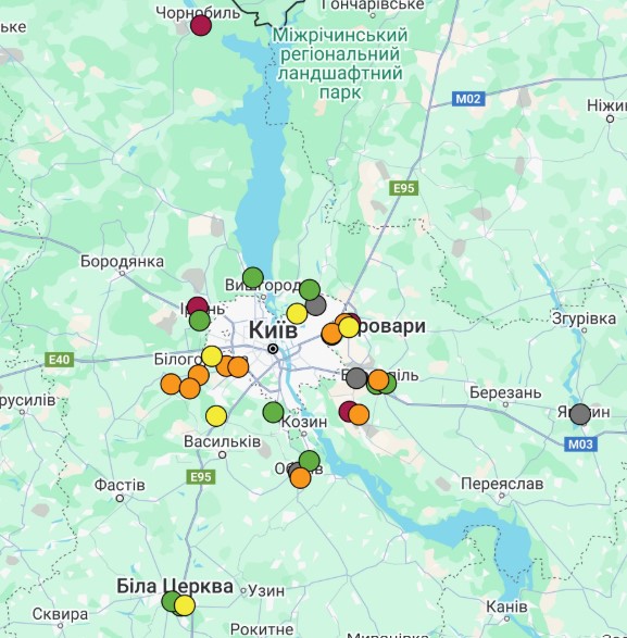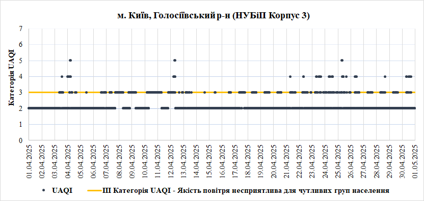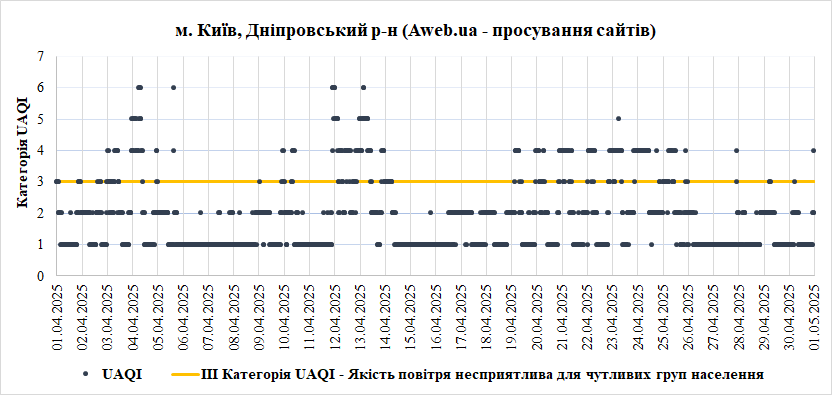 По Київській області за період з 01.04.2025 по 30.04.2025 аналізували дані з 33 станцій моніторингу: