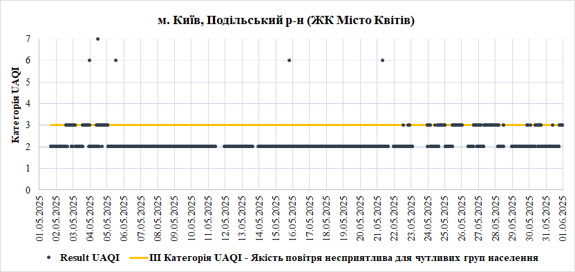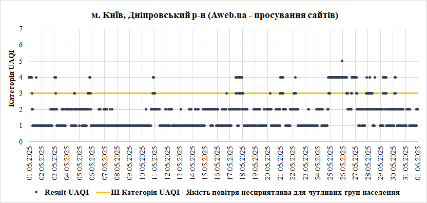 По Київській області за період з 01.05.2025 по 31.05.2025 аналізували дані з 34 станцій моніторингу: