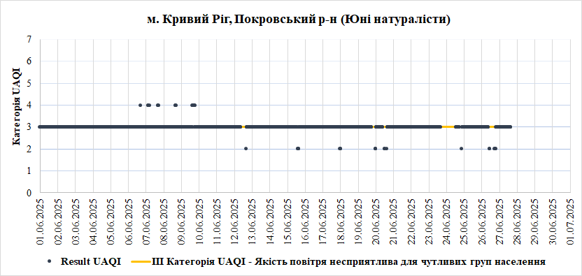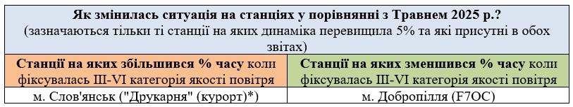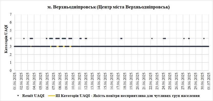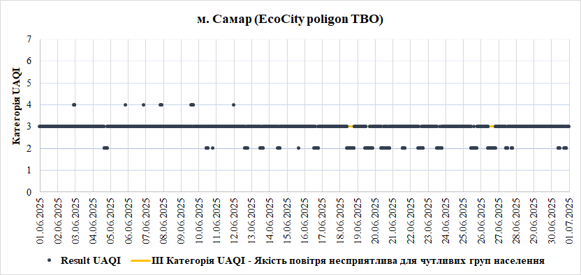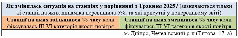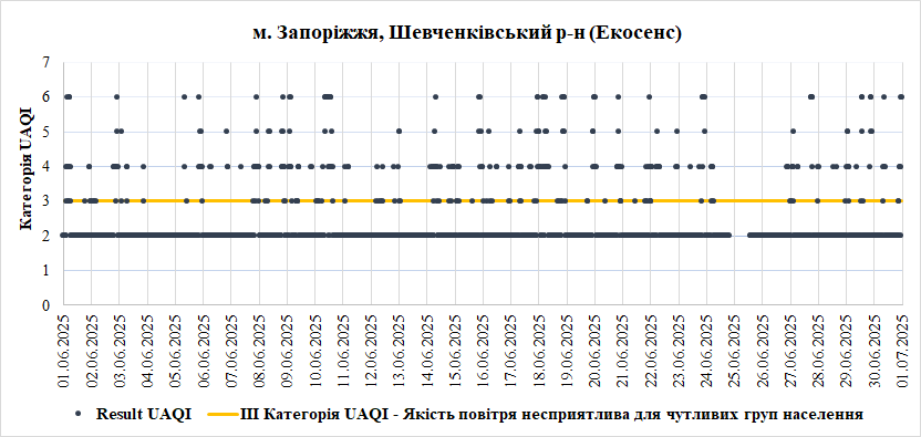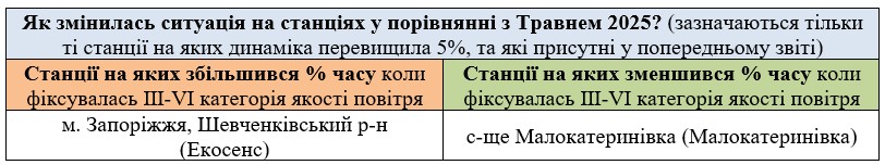 За період з 01.06.2025 по 30.06.2025 взяті до аналізу дані з 8 станцій моніторингу по Запорізькій області:
