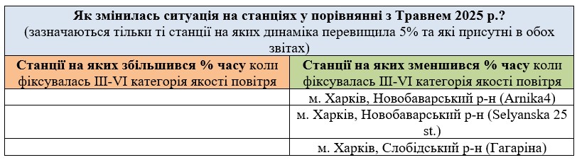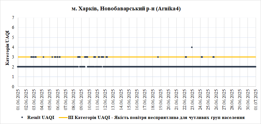 За червень аналізували дані з 6 станцій моніторингу розташованих у м. Харків (5 станцій) та селищі Пісочин (1 станція, яка виключена з аналізу через недостатню кількість даних).