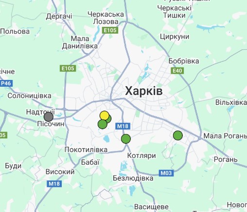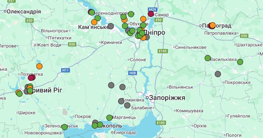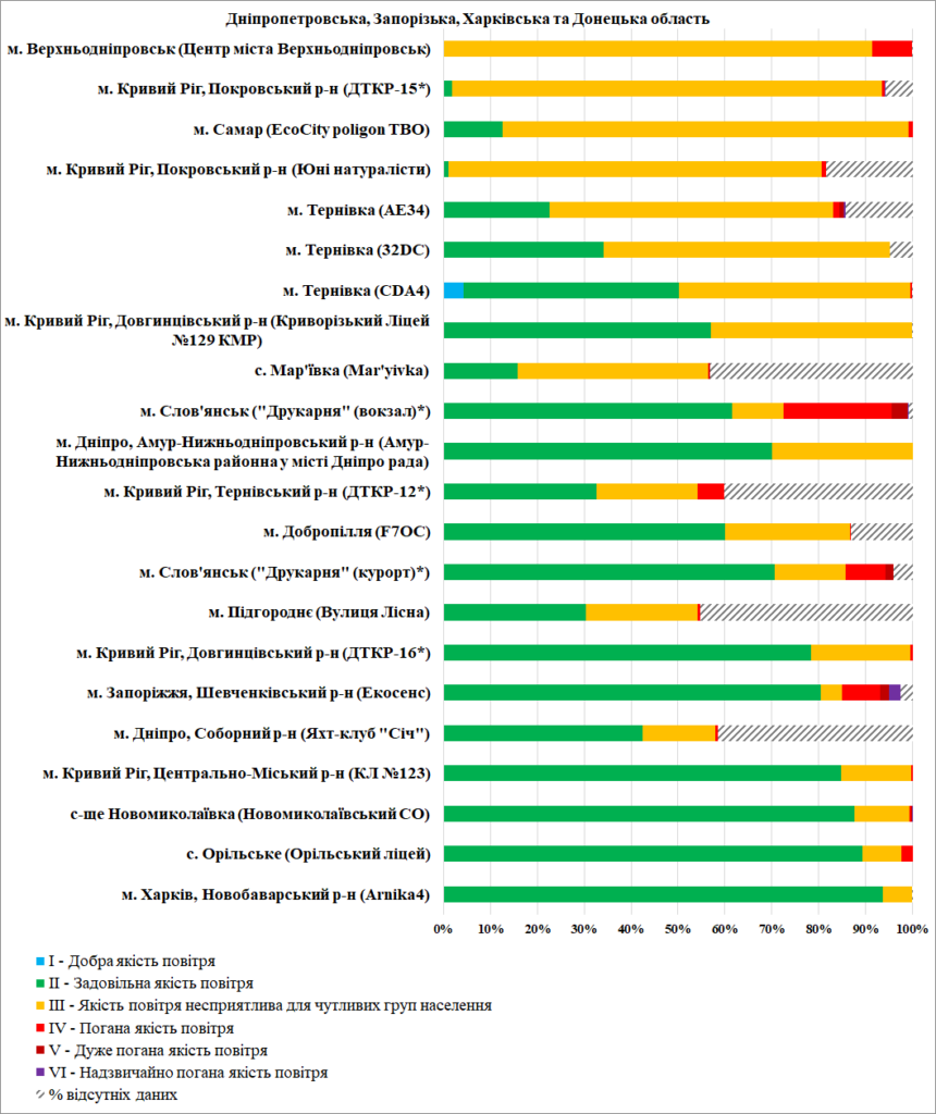 - м. Дніпро, Новокодацький р-н (ГФ ОГП «Екологічний патруль», Сухачівка) – 67% даних відсутні;