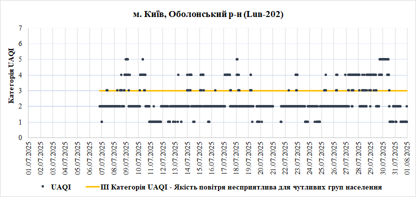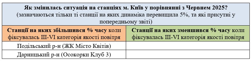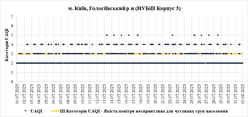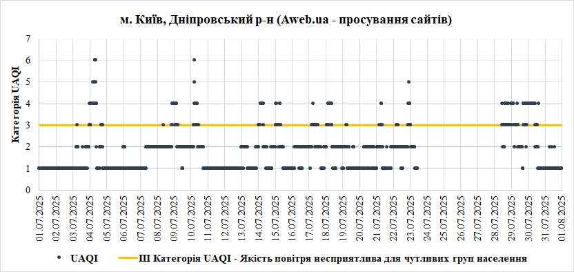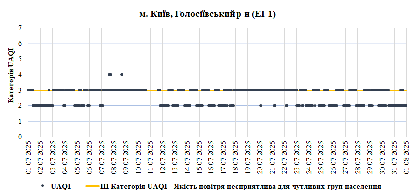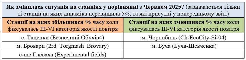 По Київській області за період з 01.07.2025 по 31.07.2025 аналізували дані з 31 станції моніторингу: