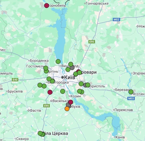- м. Обухів – 3 станції (з яких 2 станції виключені з подальшого аналізу через недостатню кількість даних);