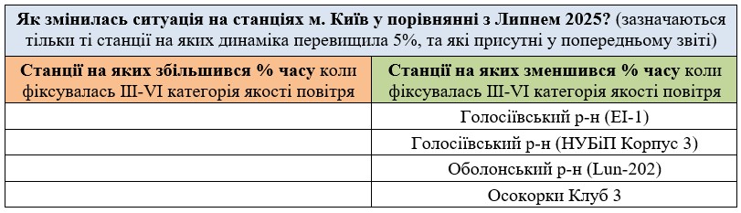 Звіт щодо стану атмосферного повітря в м. Київ та Київській області за серпень 2025 року