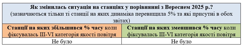 За жовтень аналізувались дані з 2-х станцій моніторингу: