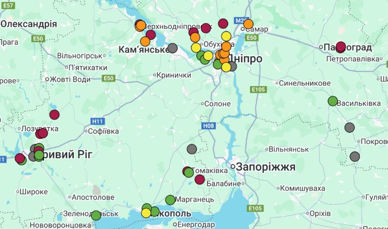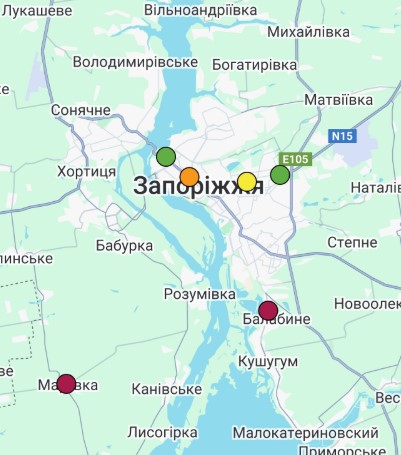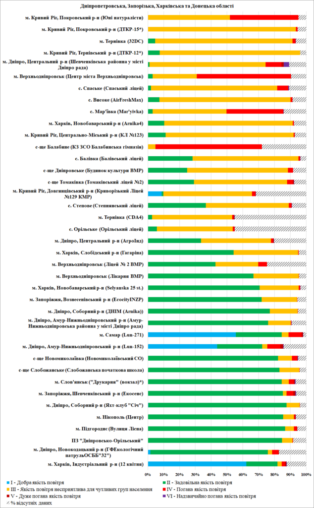 - м. Дніпро, Новокодацький р-н (ГФ ОГП «Екологічний патруль», Сухачівка) – 15% даних відсутні;