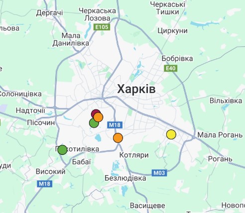 – оксид вуглецю (СO) – у м. Харків (Новобаварський та Слобідський р-н).
