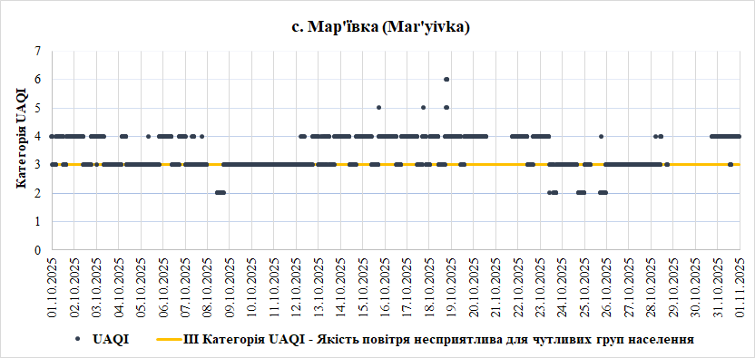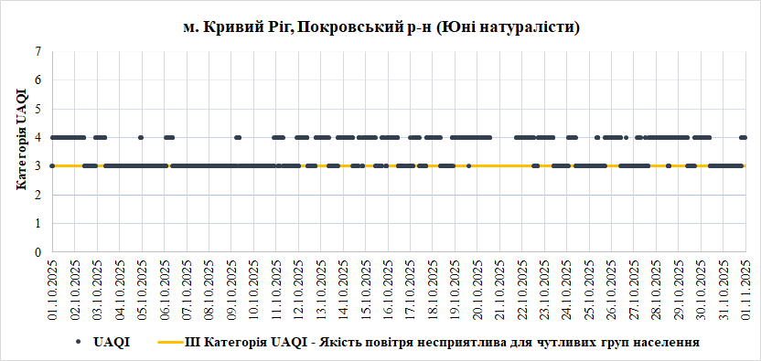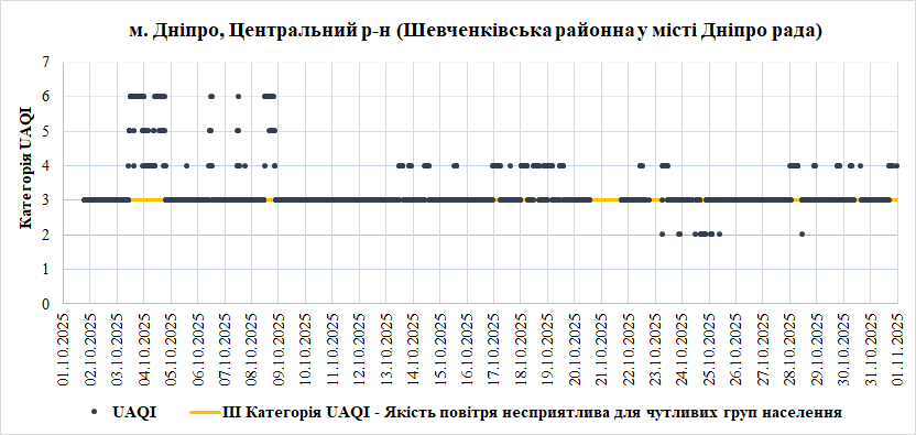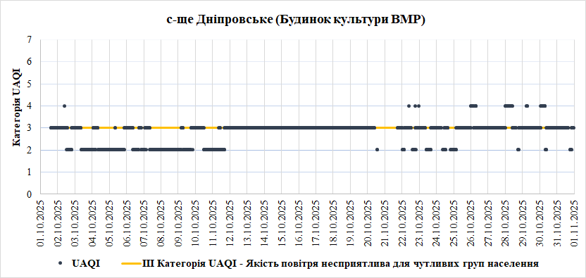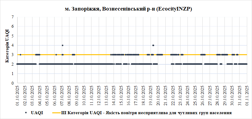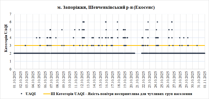 За період з 01.10.2025 по 31.10.2025 взяті до аналізу дані з 6 станцій моніторингу по Запорізькій області: