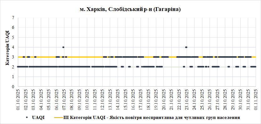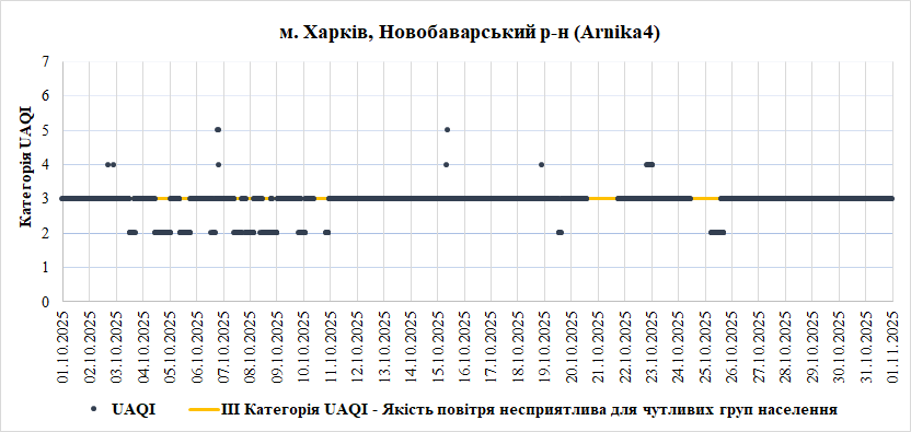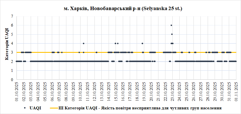 За жовтень аналізували дані з 6 станцій моніторингу розташованих у м. Харків: