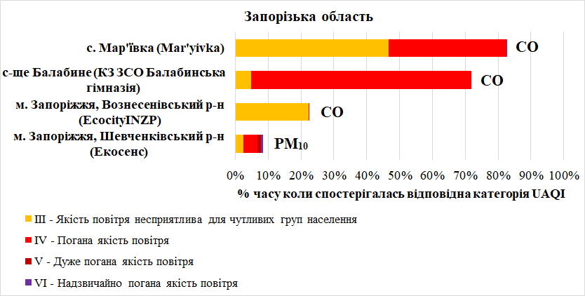 – оксид вуглецю (СO) – у м. Запоріжжя, с-щі Балабине та селі Мар’ївка.