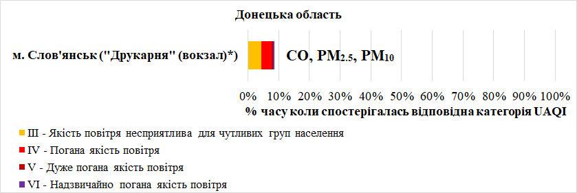 – оксид вуглецю (СО) та дрібнодисперсний пил (РМ10 та РМ2,5) – у Слов’янську.