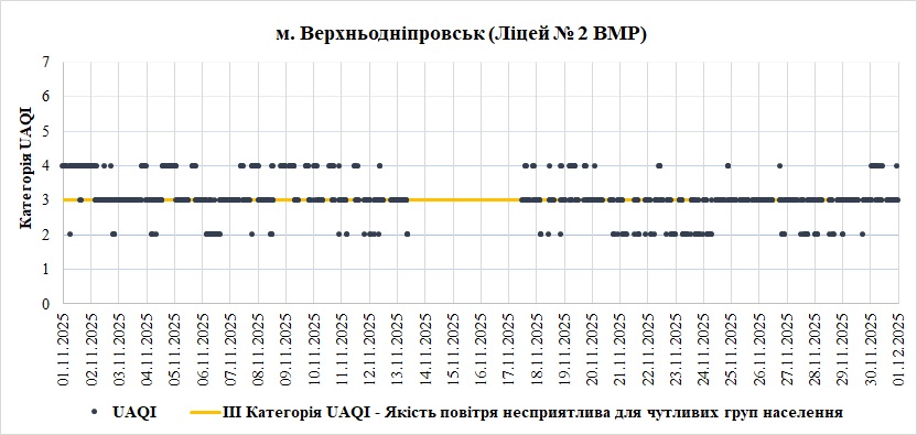 - м. Верхньодніпровськ (Центр міста Верхньодніпровськ) – 43% даних відсутні;