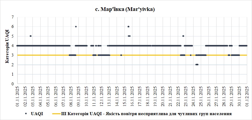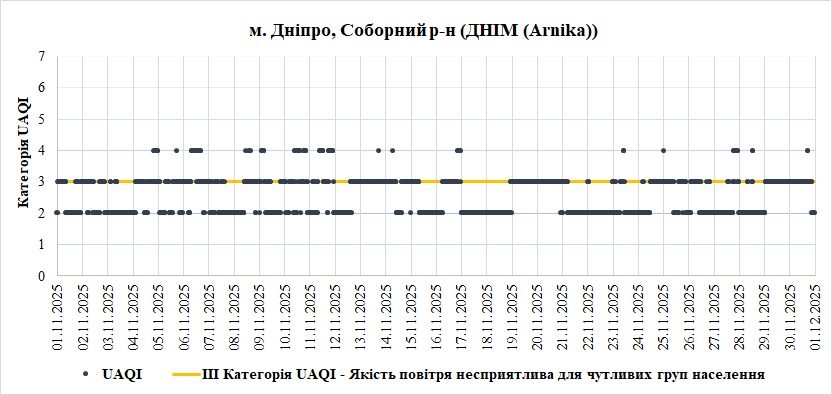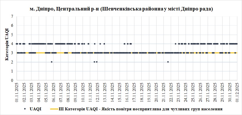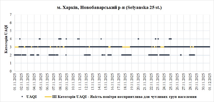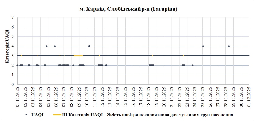 За листопад аналізували дані з 6 станцій моніторингу розташованих у м. Харків: