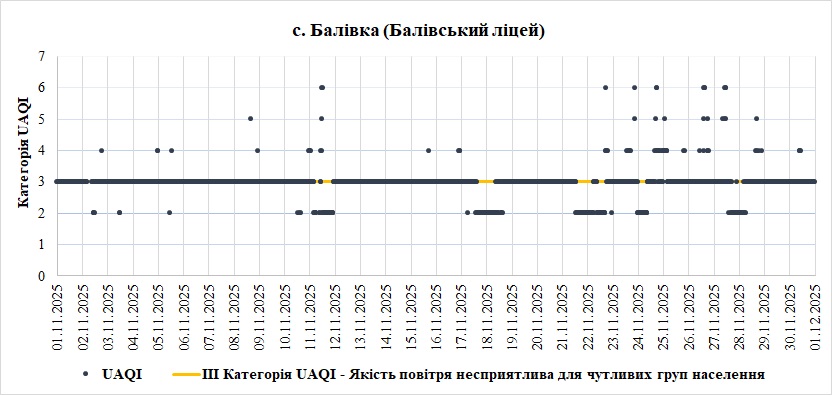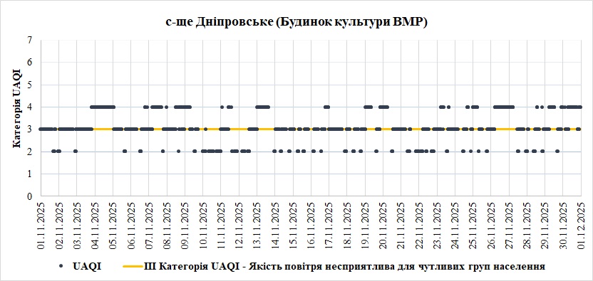 По Запорізькій області у листопаді аналізувались дані з 6 станцій моніторингу які розташовані у м. Запоріжжя, с-ще Балабине та с. Мар’ївка: