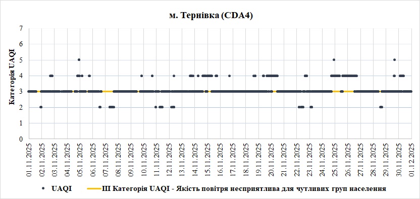 - м. Тернівка – 2 станції (з яких 1 станція виключена з аналізу через недостатню кількість даних);