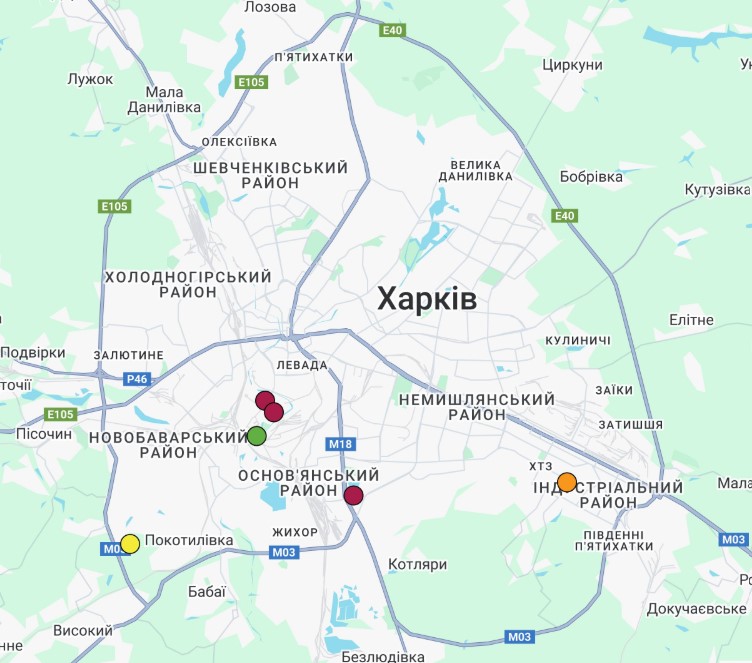 - м. Харків, Новобаварський р-н (Каразінський навчально-науковий інститут екології) – 23% даних відсутні;