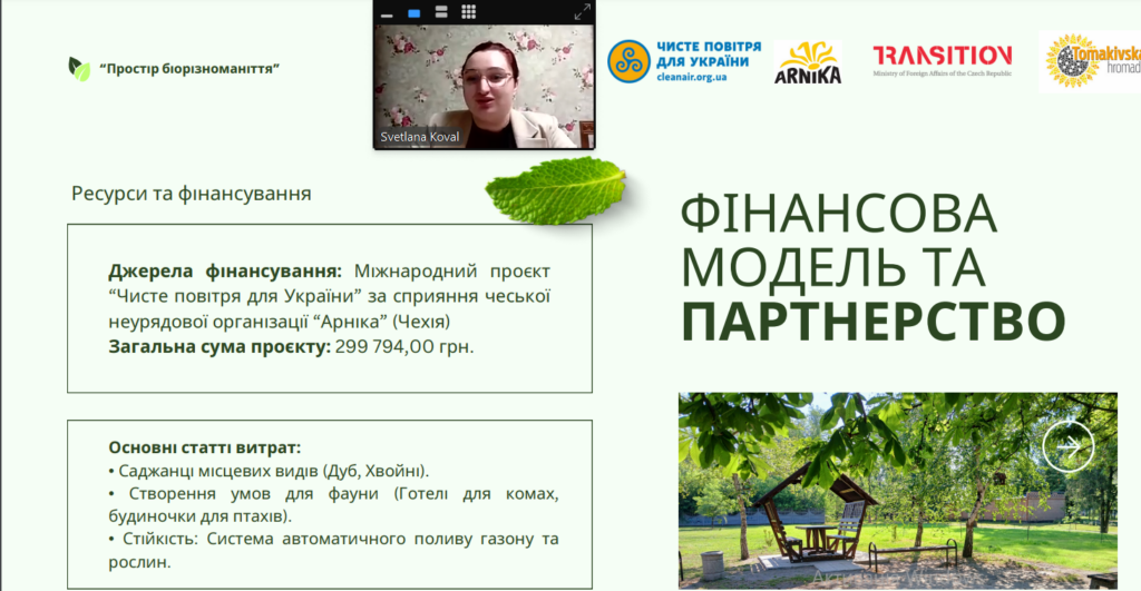 Світлана Коваль, провідна спеціалістка відділу інвестиційної діяльності Томаківської селищної ради (Дніпропетровська область), розповіла про реалізацію проєкту «Простір біорізноманіття», який перетворив деградовану зелену зону на інклюзивний рекреаційний простір.