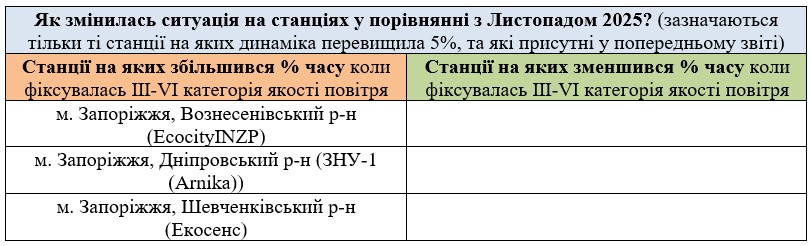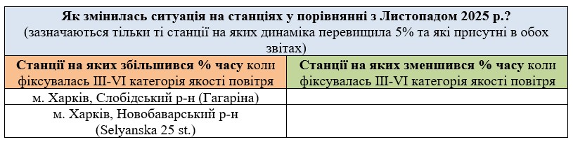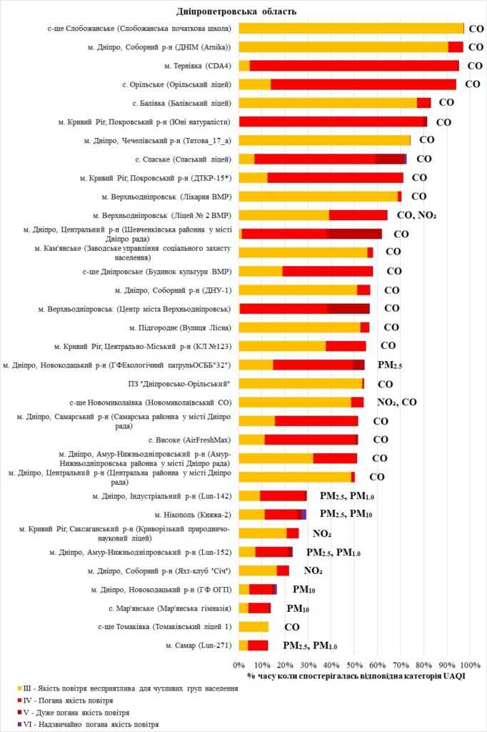 Нагадуємо, що з усіх станцій, які досліджувалися, ми відбираємо лише ті, на яких спостерігалась несприятлива та погана якість повітря згідно Українського індексу якості повітря UAQI (категорії якості повітря Ⅲ – Ⅵ)*.