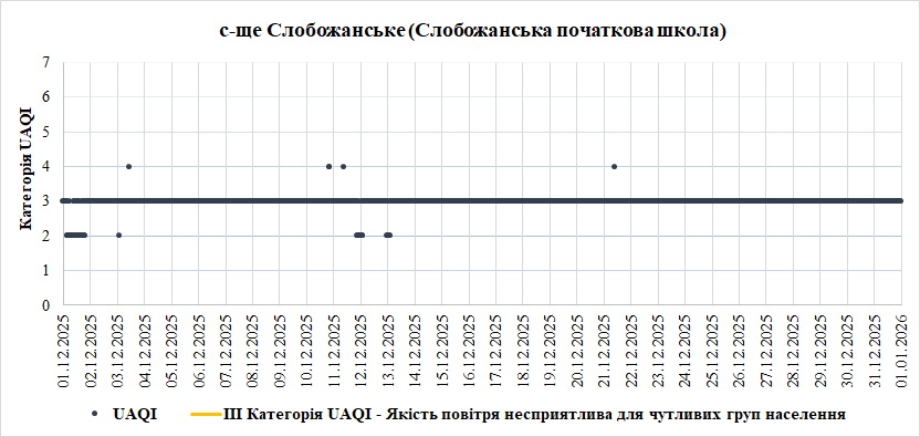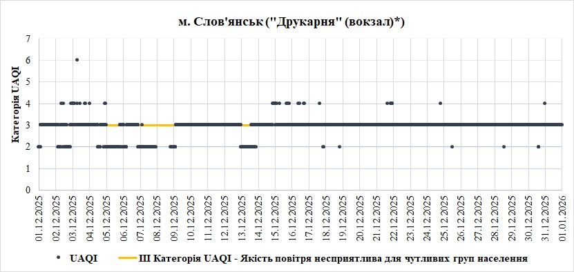 За грудень аналізувались дані з 1 станції моніторингу яка розташована у м. Слов’янськ – «”Друкарня” (вокзал)*».