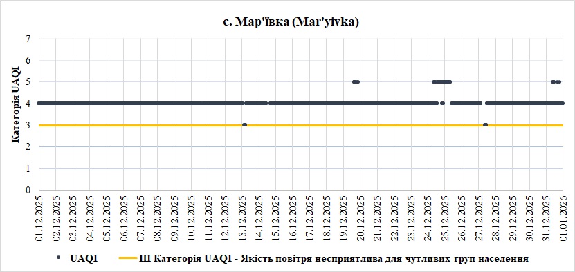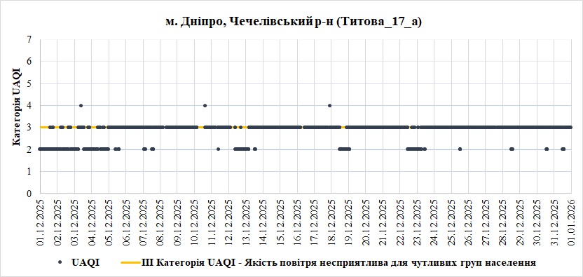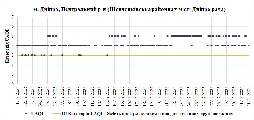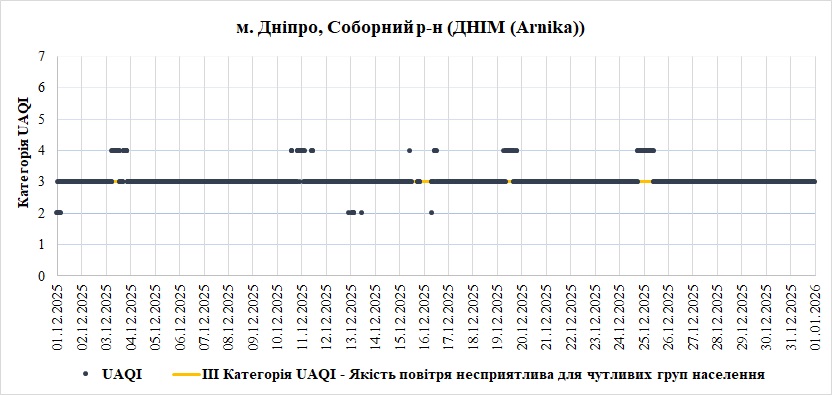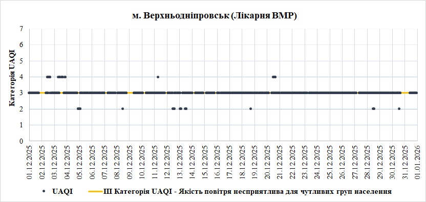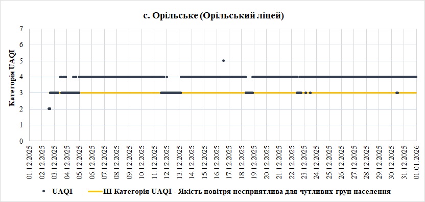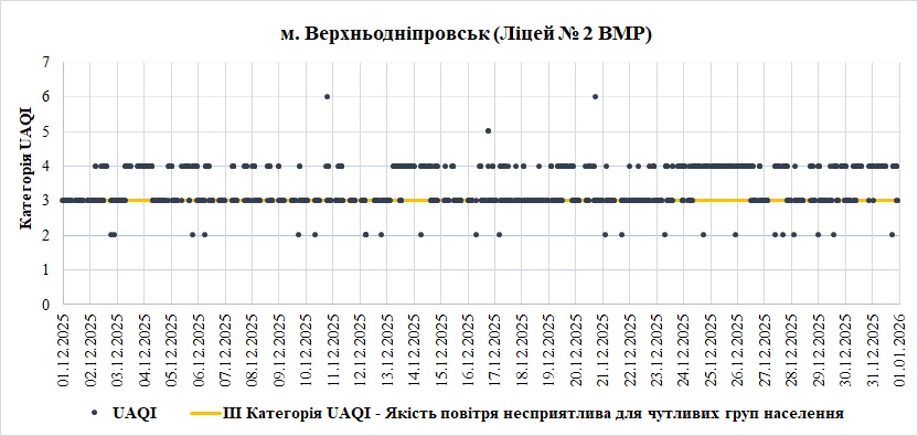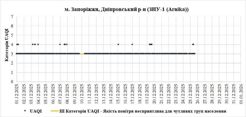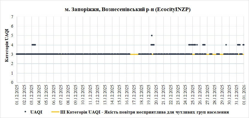 За період з 01.12.2025 по 31.12.2025 взяті до аналізу дані з 6 станцій моніторингу по Запорізькій області: