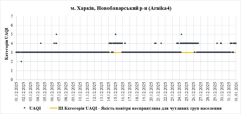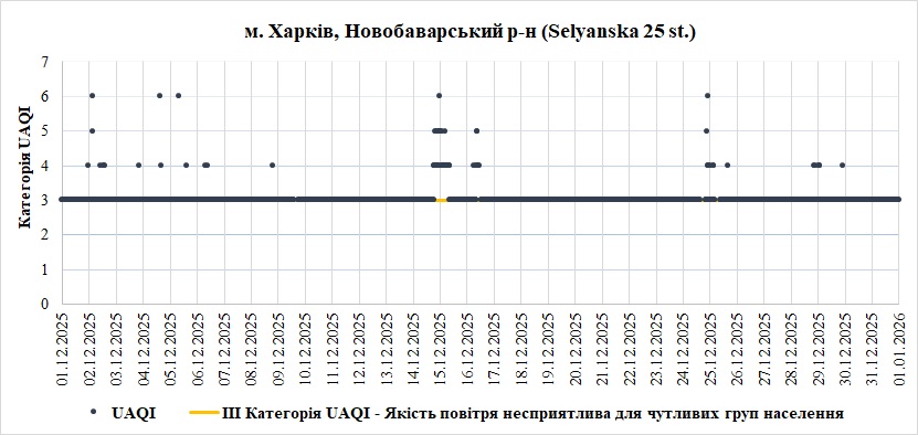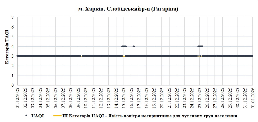 За грудень аналізували дані з 5 станцій моніторингу розташованих у м. Харків: