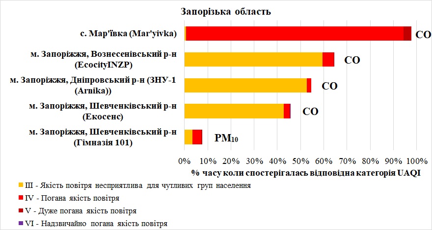 – оксид вуглецю (СO) – у м. Запоріжжя та селі Мар’ївка.