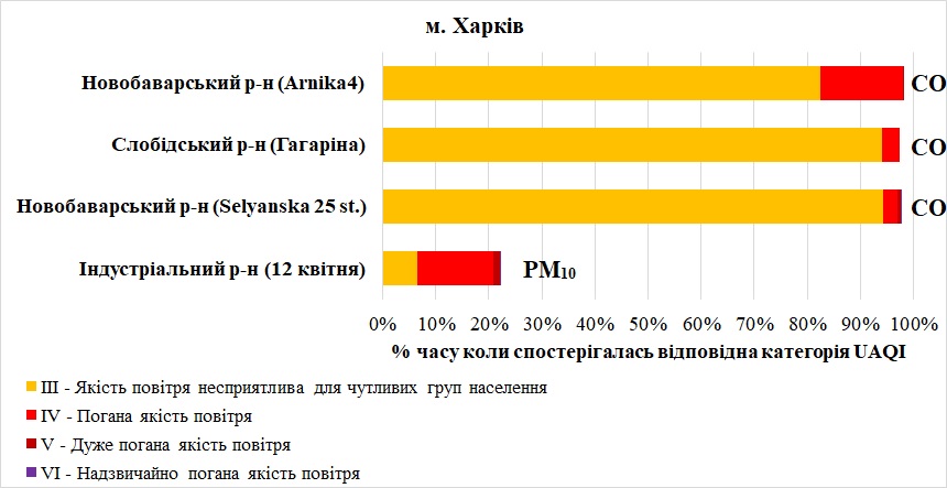 – оксид вуглецю (СO) – у м. Харків (Новобаварський та Слобідський р-н).