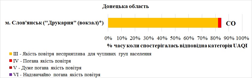 За даними станцій моніторингу повітря EcoCity у Слов’янську в грудні забруднювачем, що найбільше впливав на якість атмосферного повітря – оксид вуглецю (СО).