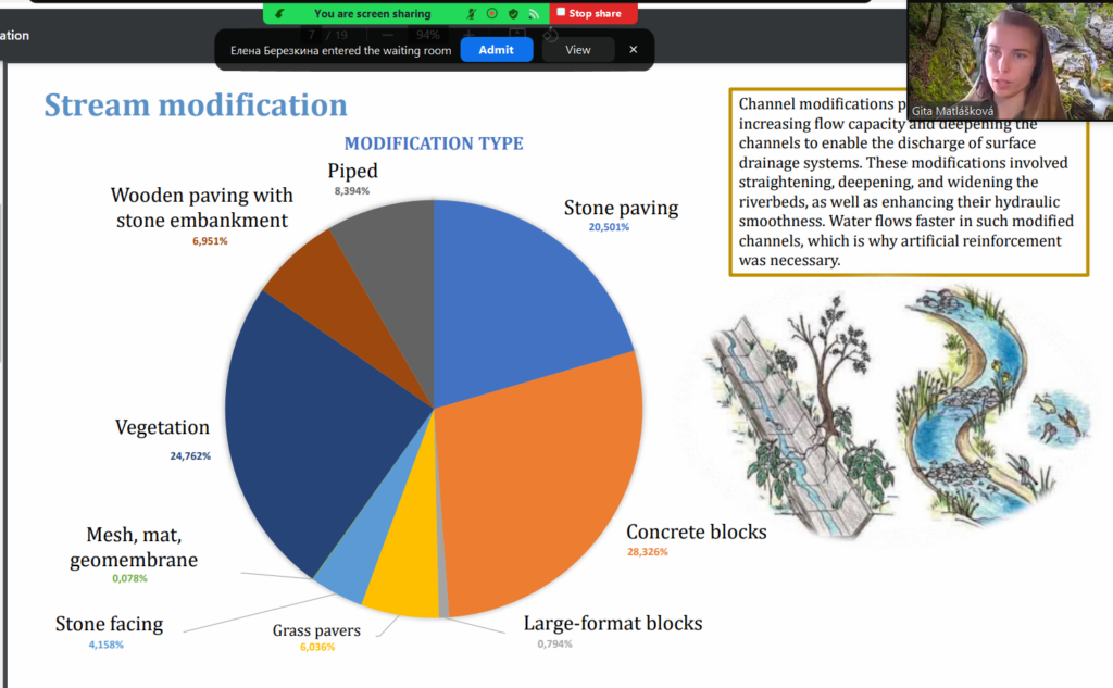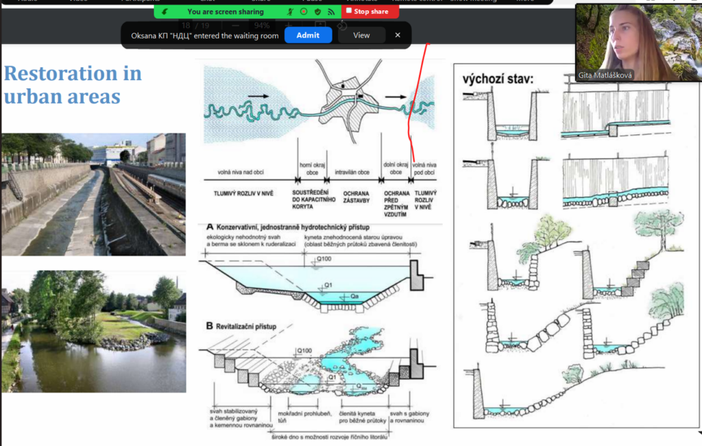 Гіта Матлашкова, очільниця команди захисту та менеджменту водних об’єктів НГО Арніка, Чехія, представила чеський досвід  сталого управління малими річками та практики ренатуралізації. Чеська експертка зазначила, що добре знає, що таке «розлючена річка».