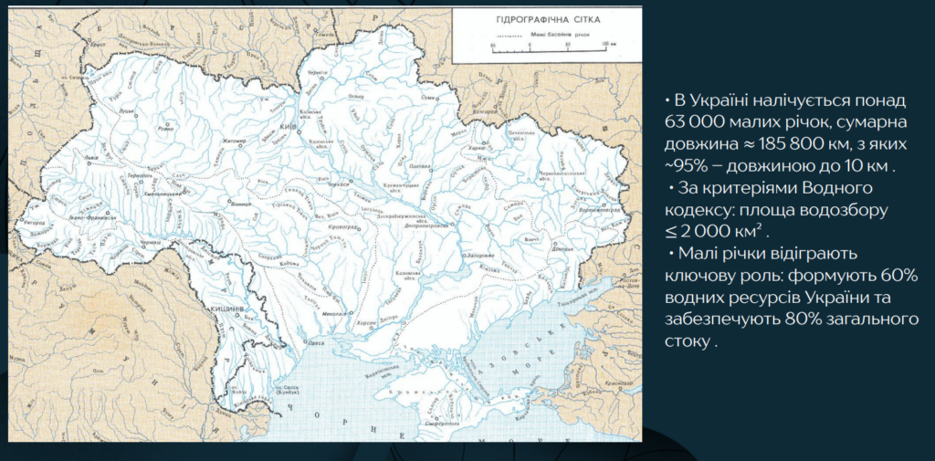 В Україні налічується понад 63 тисячі малих річок, і вони формують 60% водних ресурсів країни, зазначила. Проте за останні 15 років ми втратили понад 10 тисяч таких річок.
