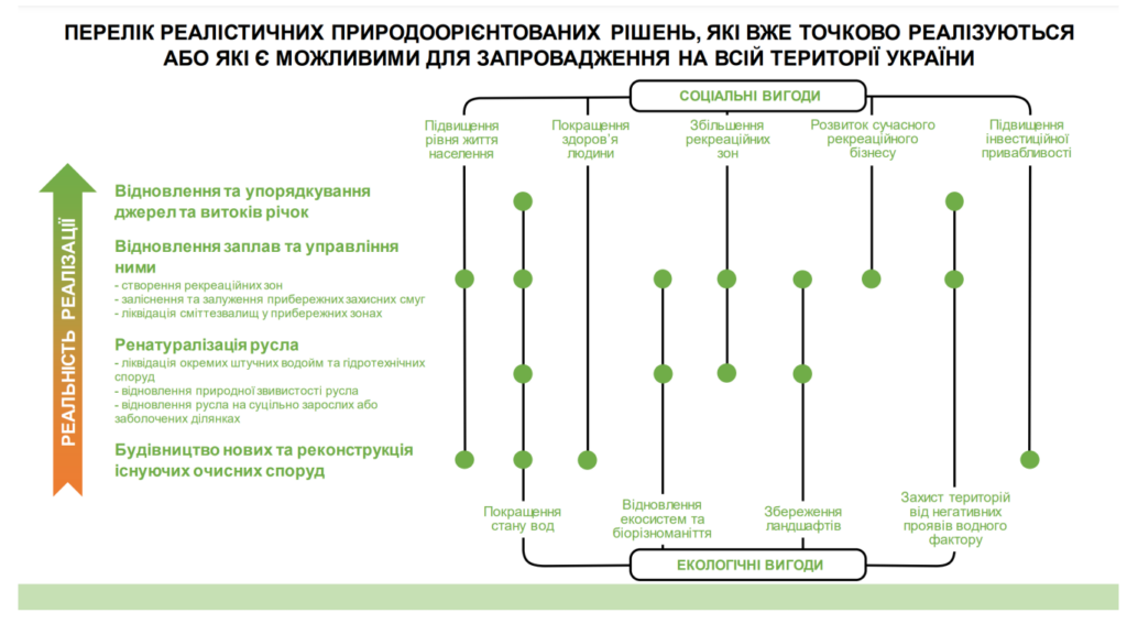 зелено-синя інфраструктура: зменшення техногенного навантаження, організація парків, відкритих річищ замість закритих труб.