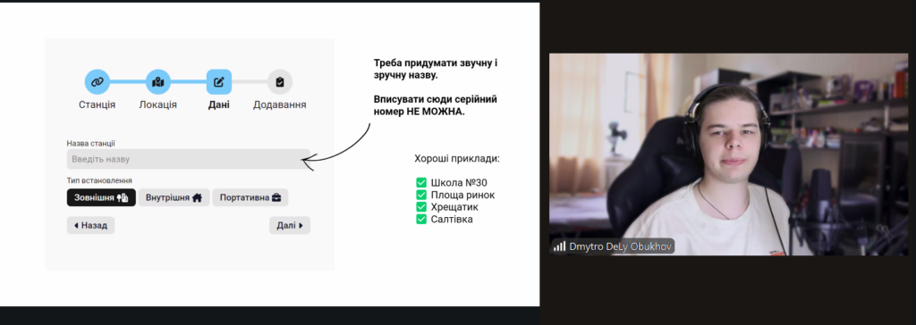 Під час заходу говорили як моніторинг атмосферного повітря працює в умовах війни, а також представили оновлення сайту Reborn.EcoCity. Зокрема, розробник платформи Дмитро Обухов надав покрокові інструкції зі встановлення станцій і пояснив, чому регулярне сервісне обслуговування — критично важливе.